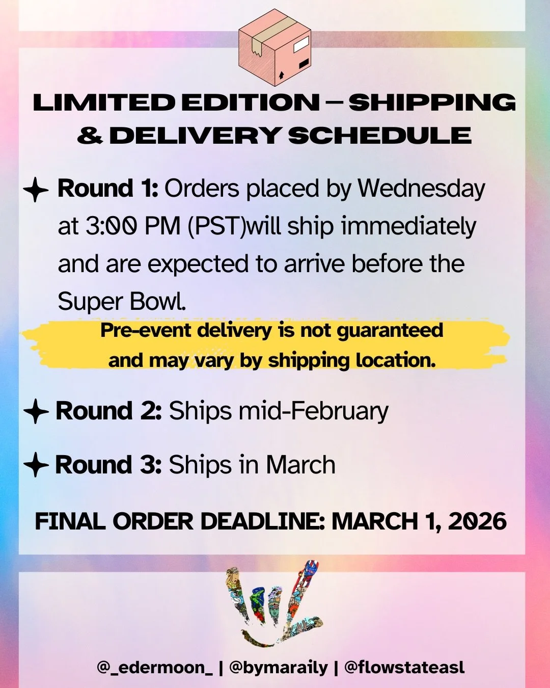 Every dollar from your purchase directly supports Deaf-made, Deaf-led, and POC-led businesses and organizations – reinvesting back into Deaf ecosystems and futures. From creation to fulfillment, this collection is rooted in community care, collective access, and sustainability.